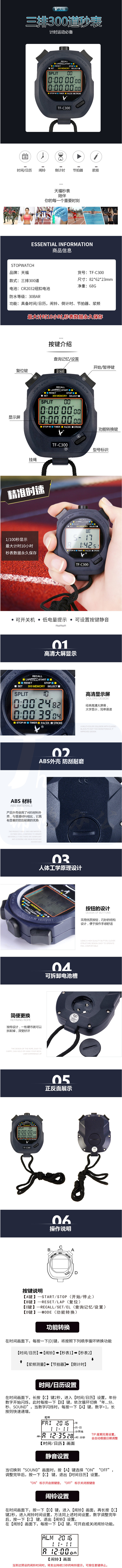 天福 TF-C300 多功能计时秒表 三排300道 存数据防水游泳裁判倒计时节拍器浆频多道运动跑步训练
