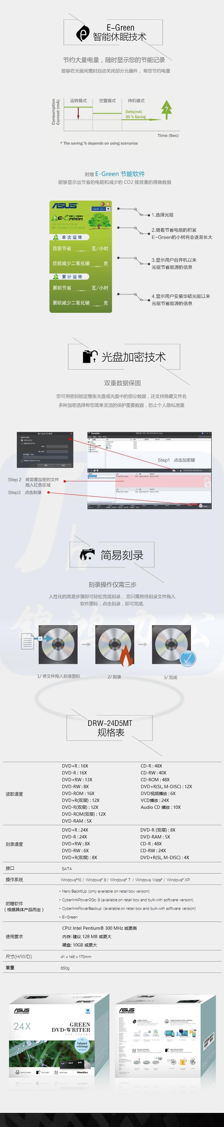华硕(ASUS) 24倍速 SATA DVD刻录机 黑色(DRW-24D5MT)