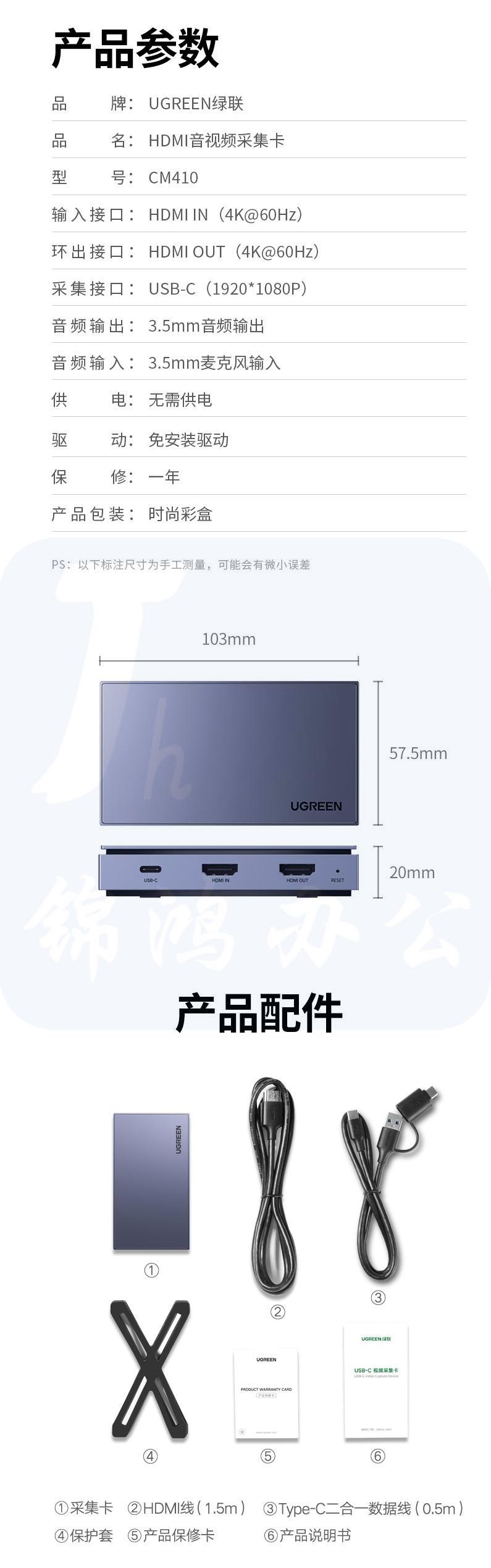 绿联(UGREEN) CM410 视频采集卡器直播 HDMI高清 10937