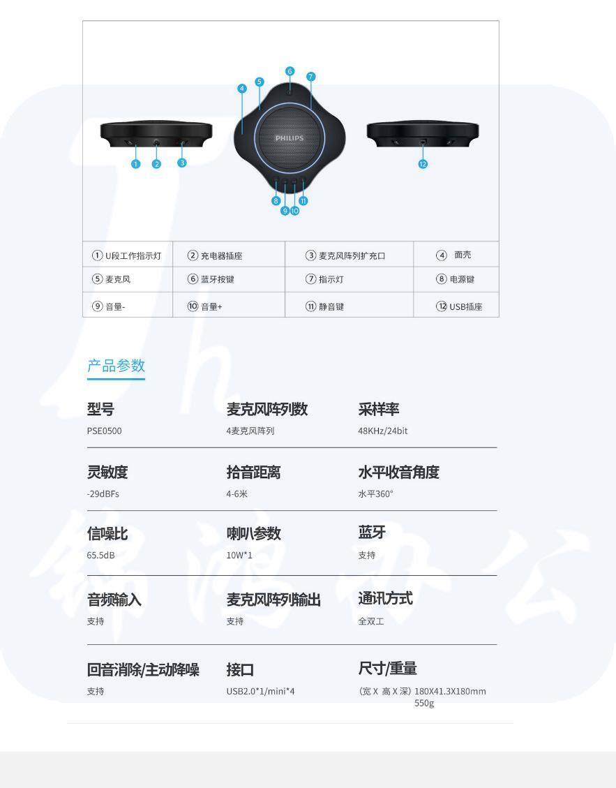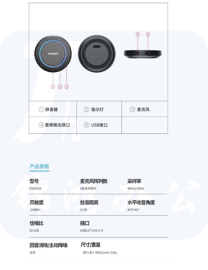 飞利浦 视频会议全向麦克风 适用60-100平米/视频会议全向麦克风/ 拾音会议扬声器/全向麦+收音*2