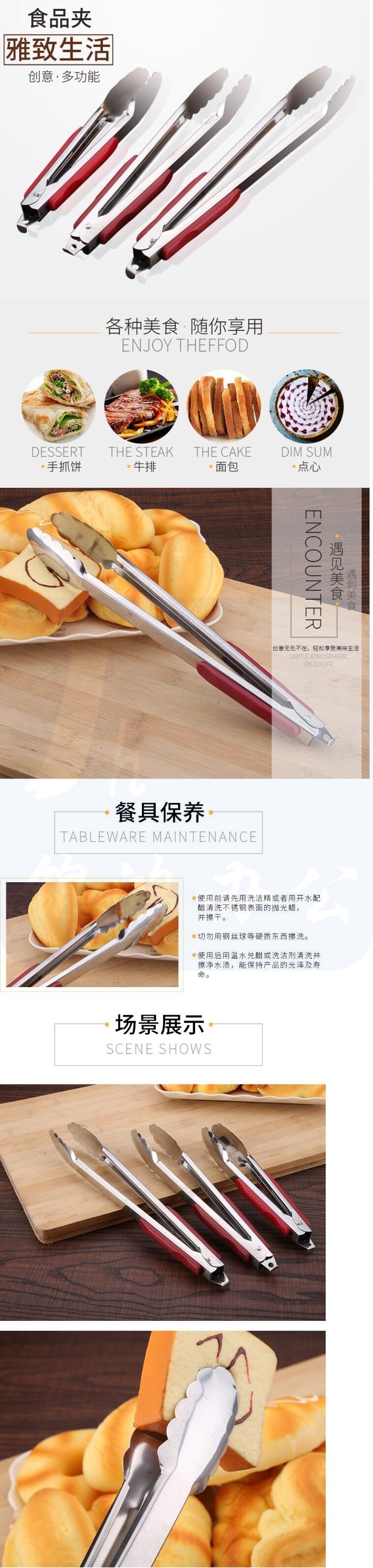 夹菜烤肉夹子烧烤夹 厨房不锈钢食品夹 面包烘焙食物夹 公餐夹 小号 货号:LJ