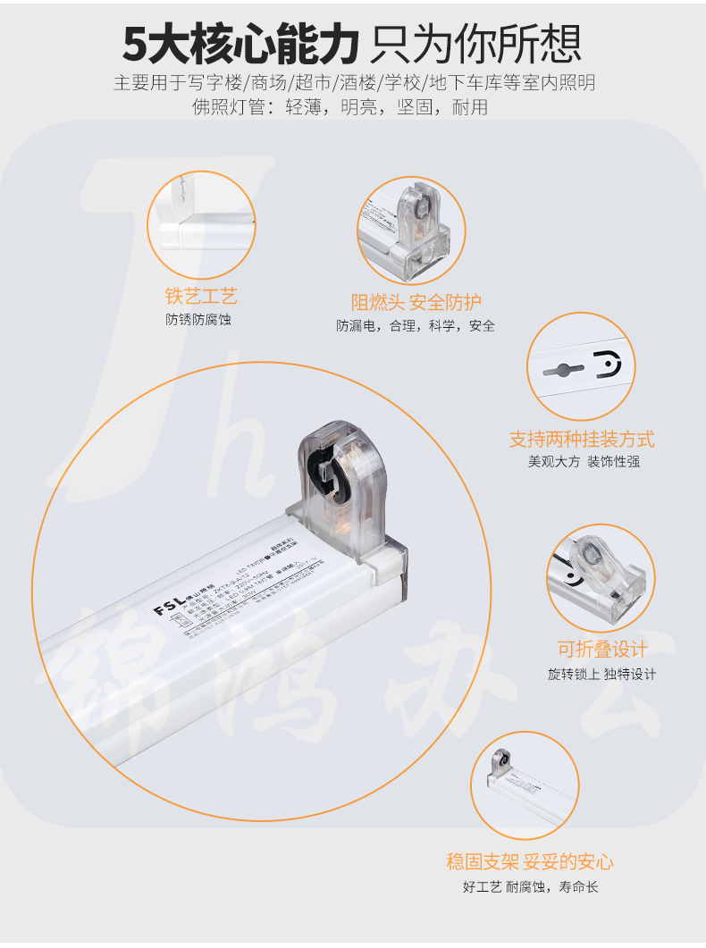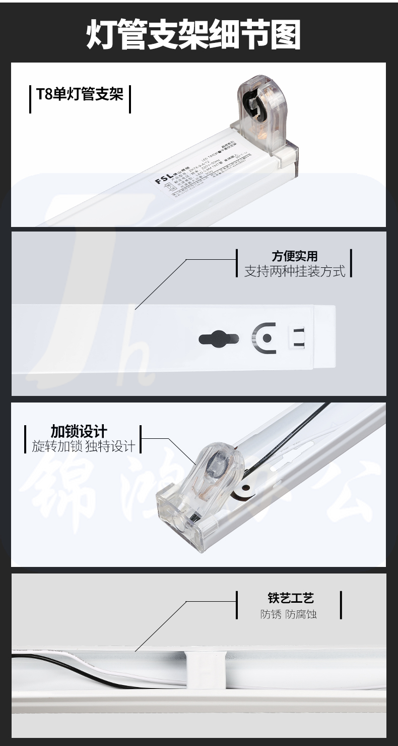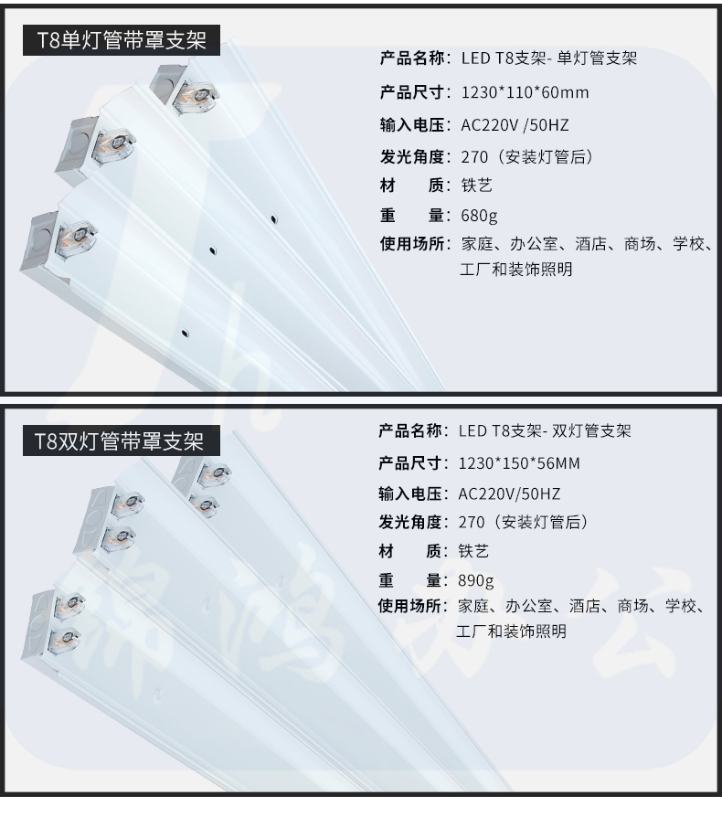 佛山(FSL)T8 双灯管带罩支架1.2米双端供电中间出线 LED灯管专用(不含安装)