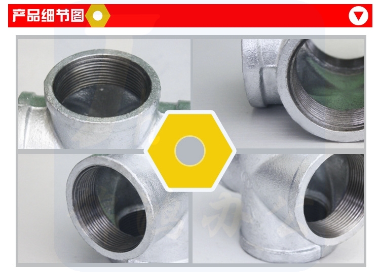 赣玛(GANMA)镀锌玛钢丝扣管件丝口管道内螺纹变径四通32 50个/包