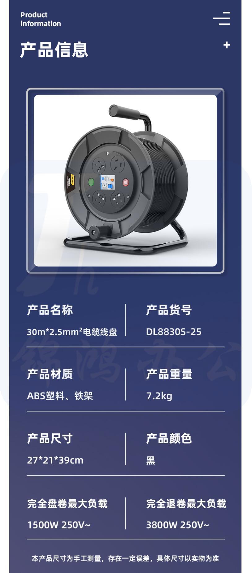 得力(deli) 工程接线盘 移动电缆线盘30米*2.5平方 DL8830S-25