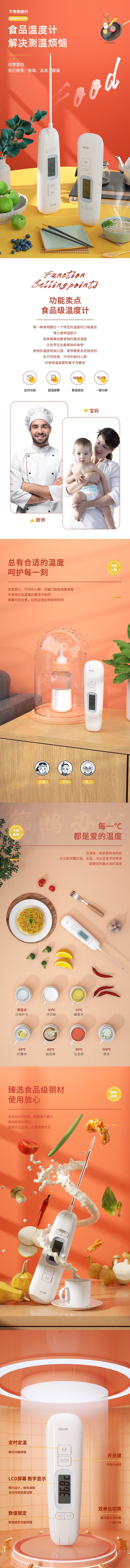 得力 8899 便携高档款食品温度测量探针(白)(只)
