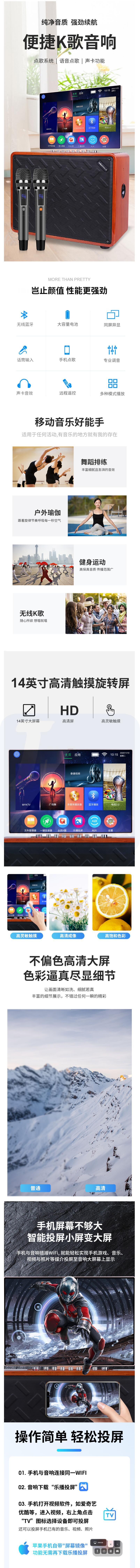 金正 k10-1 便携式广场舞音响 带12寸显示屏手提移动音箱 带话筒