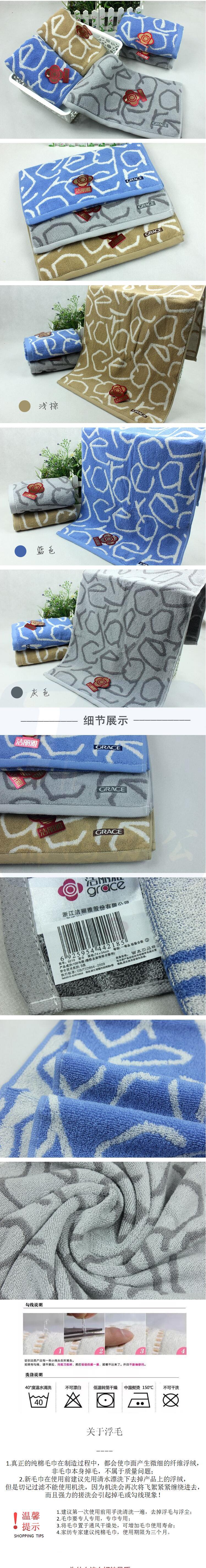 洁丽雅 新疆棉毛巾 9218 74cm*34cm 提花面巾 颜色随机