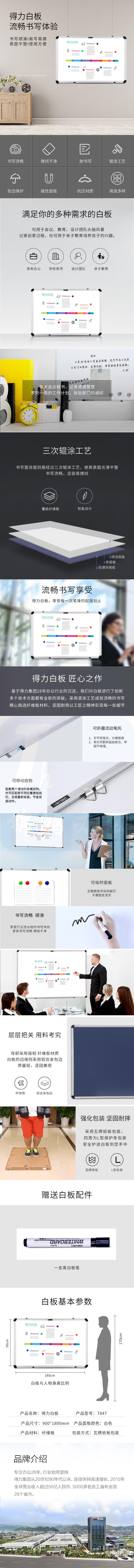 得力 180*90cm 悬挂白板 磁性白板7847 (白)