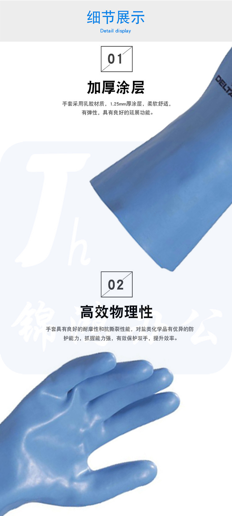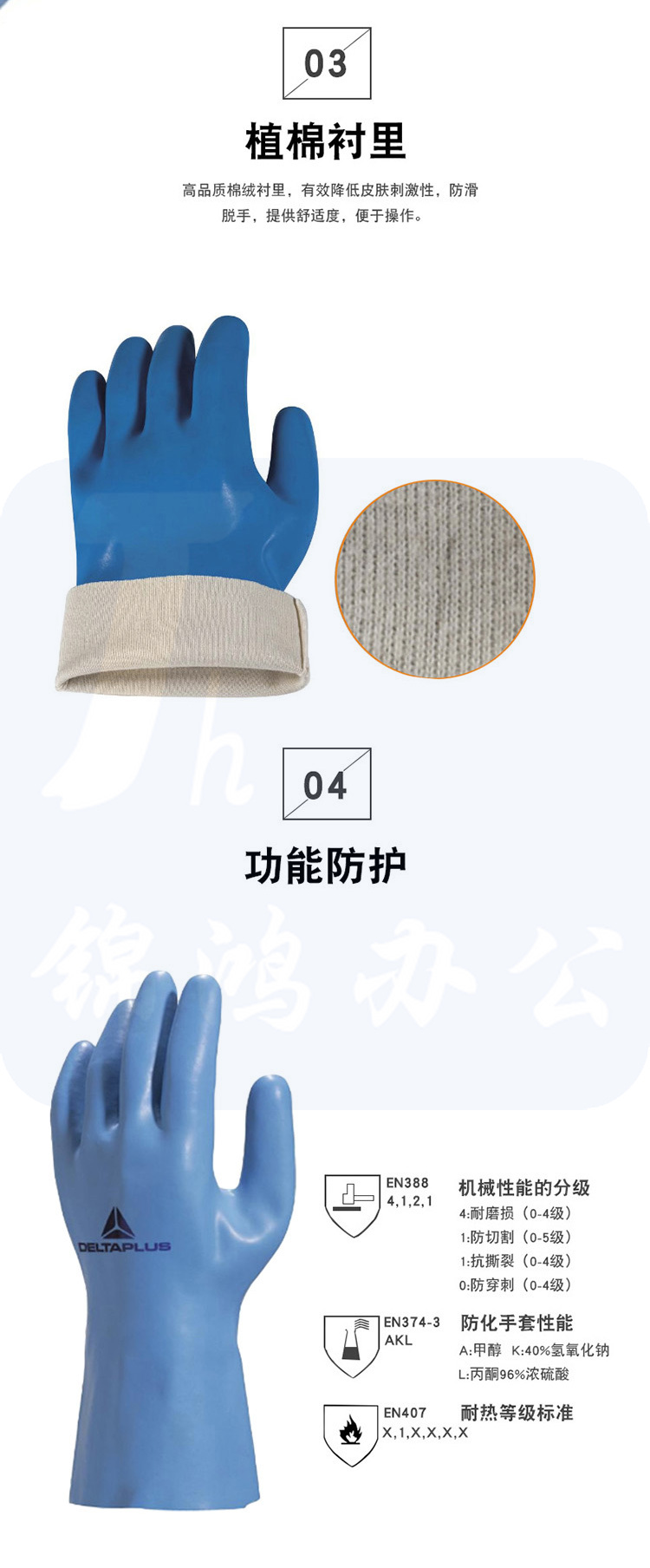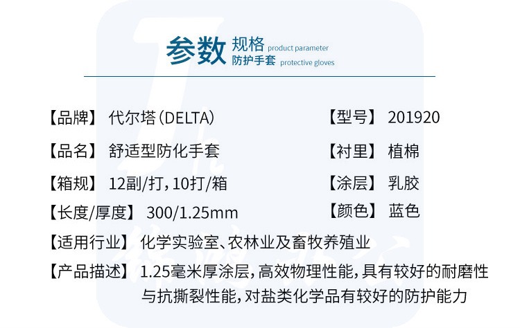代尔塔 201920 乳胶防化植棉耐磨抗撕裂手套