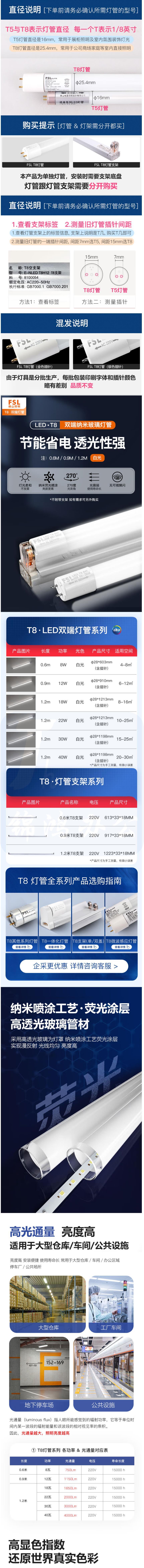 佛山照明 T8灯管LED 1.2米升级18W日光色6500K