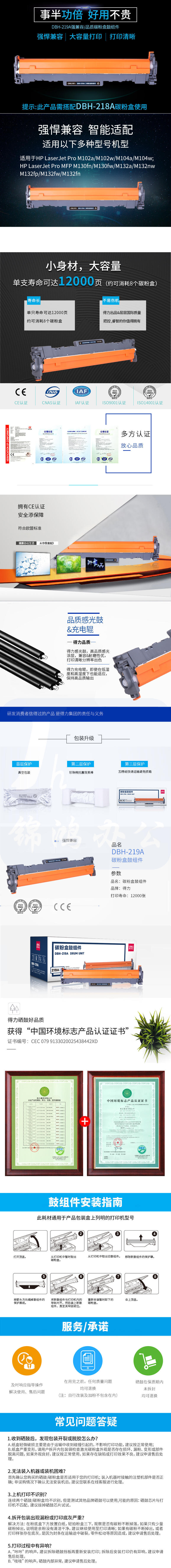 得力DBH-219A硒鼓带芯片鼓组件 适用惠普HP M104a M104w M132a不含粉盒