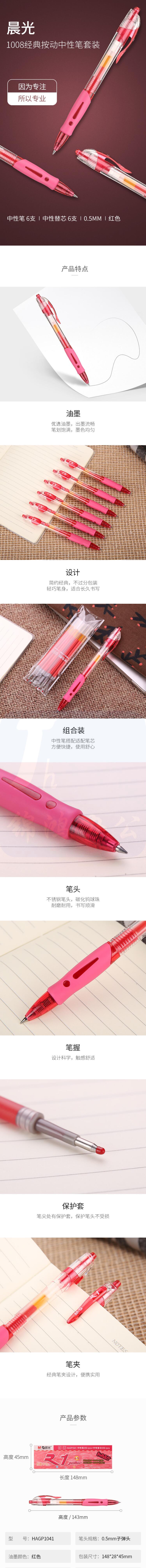 晨光GP1008红色0.5mm按动中性笔子弹头签字笔 12支/盒;