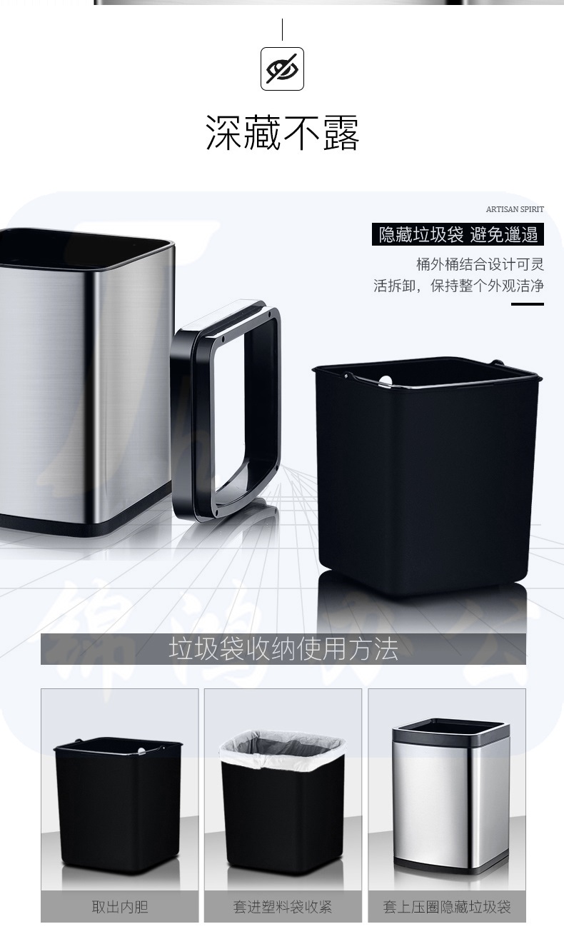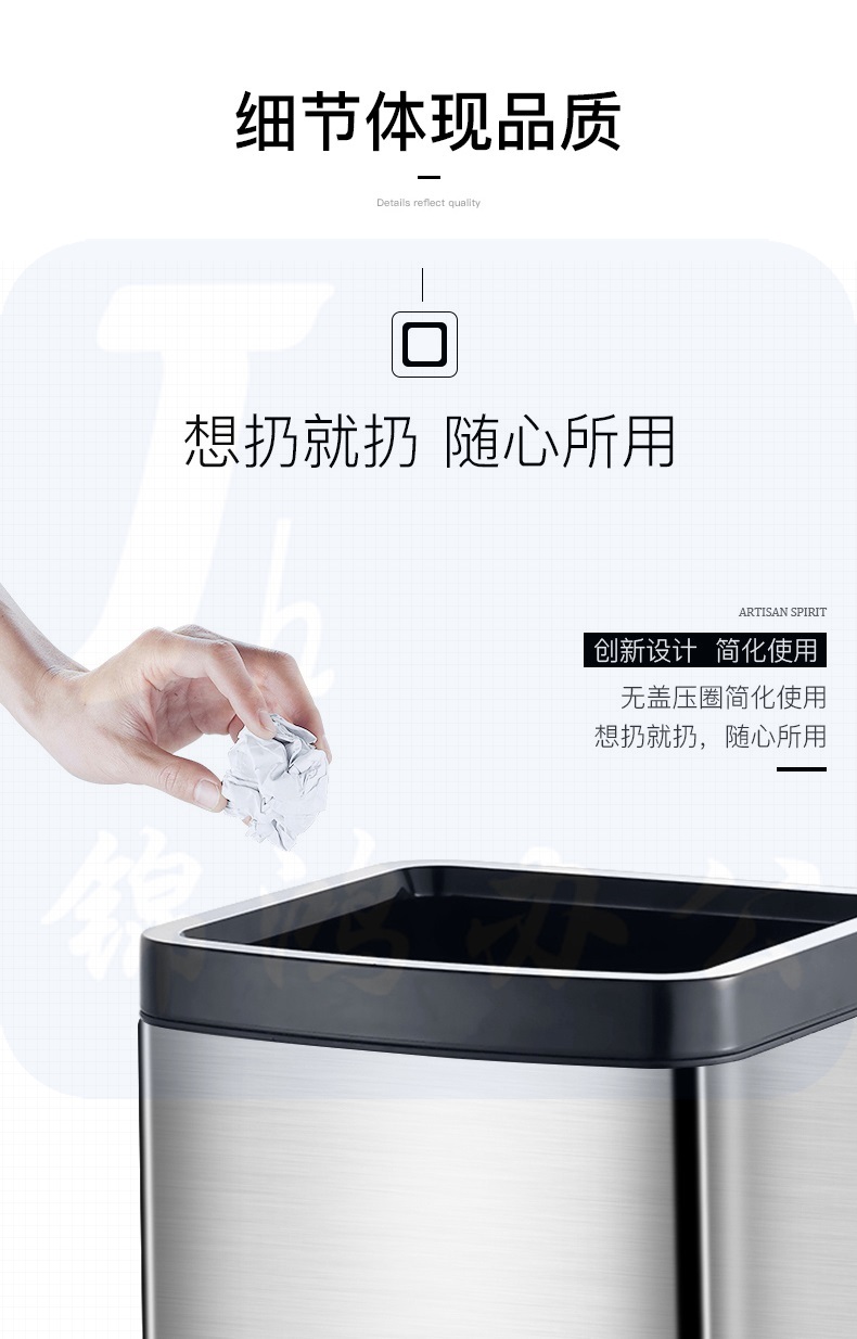 不锈钢垃圾桶无盖家用方形大号