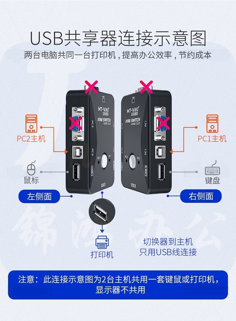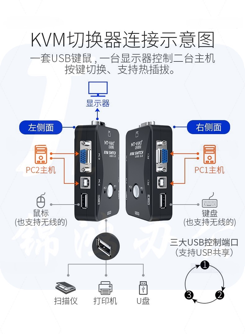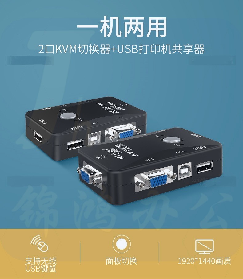 迈拓维矩 MT-201UK-CH KVM切换器2口USB手动 VGA切换器2进1出共用鼠标键盘