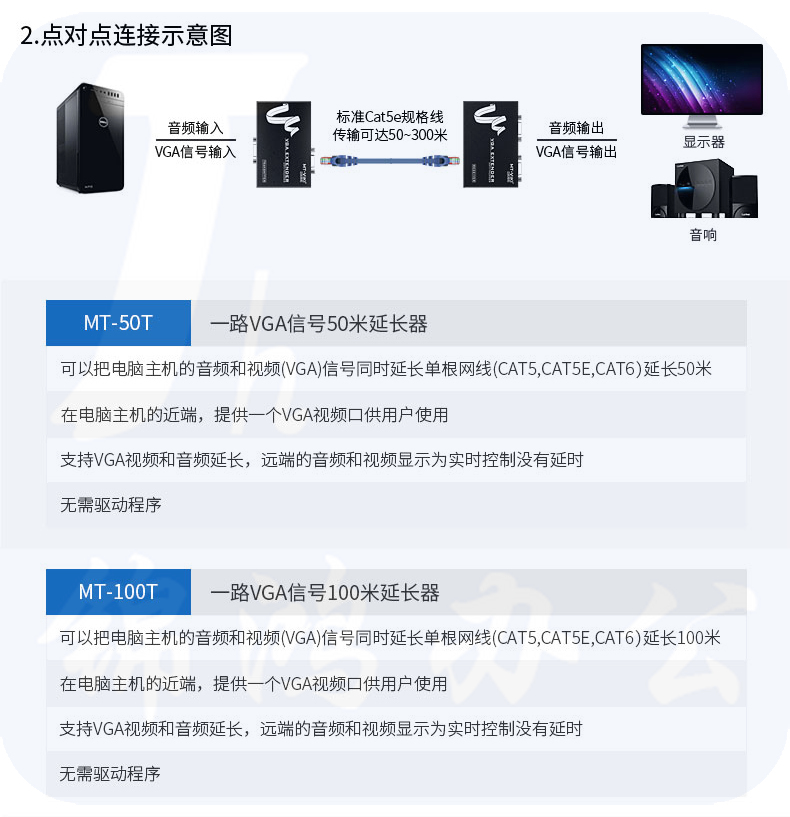 迈拓维矩(MT-viki) vga网络延长器转rj45网口双绞网线50米100米 200米 300米 2路100米延长(MT-102T)