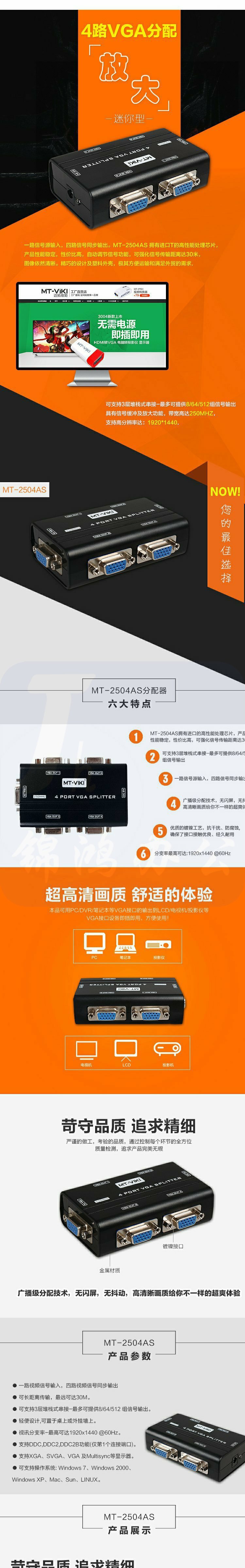 迈拓维矩MT-2504AS 四口VGA分配器1进4出 1分4分VGA屏器显示同步