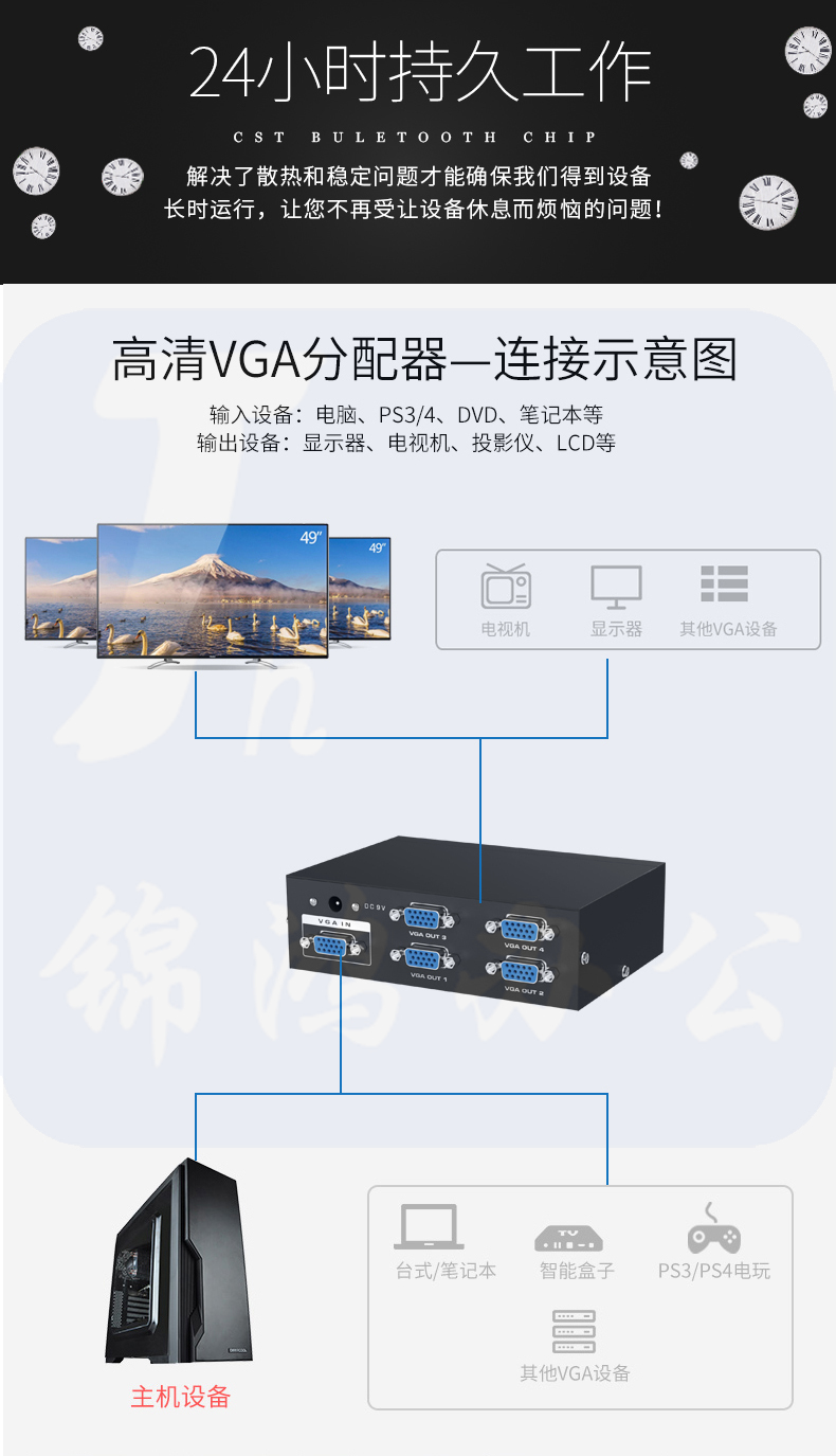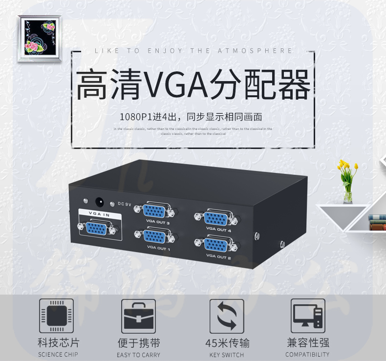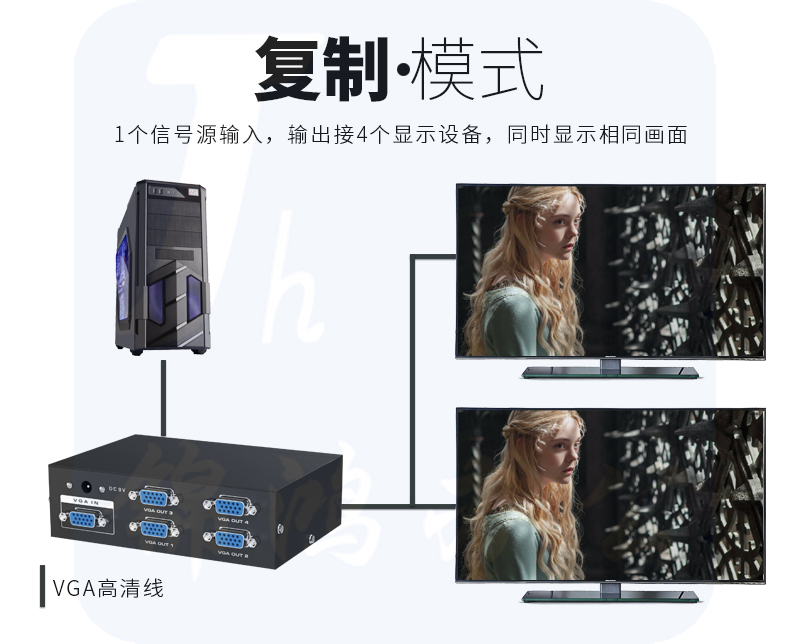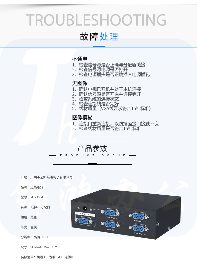 迈拓维矩MT-3504 vga分配器一分四分频器一进四出高清vga分屏器1分4