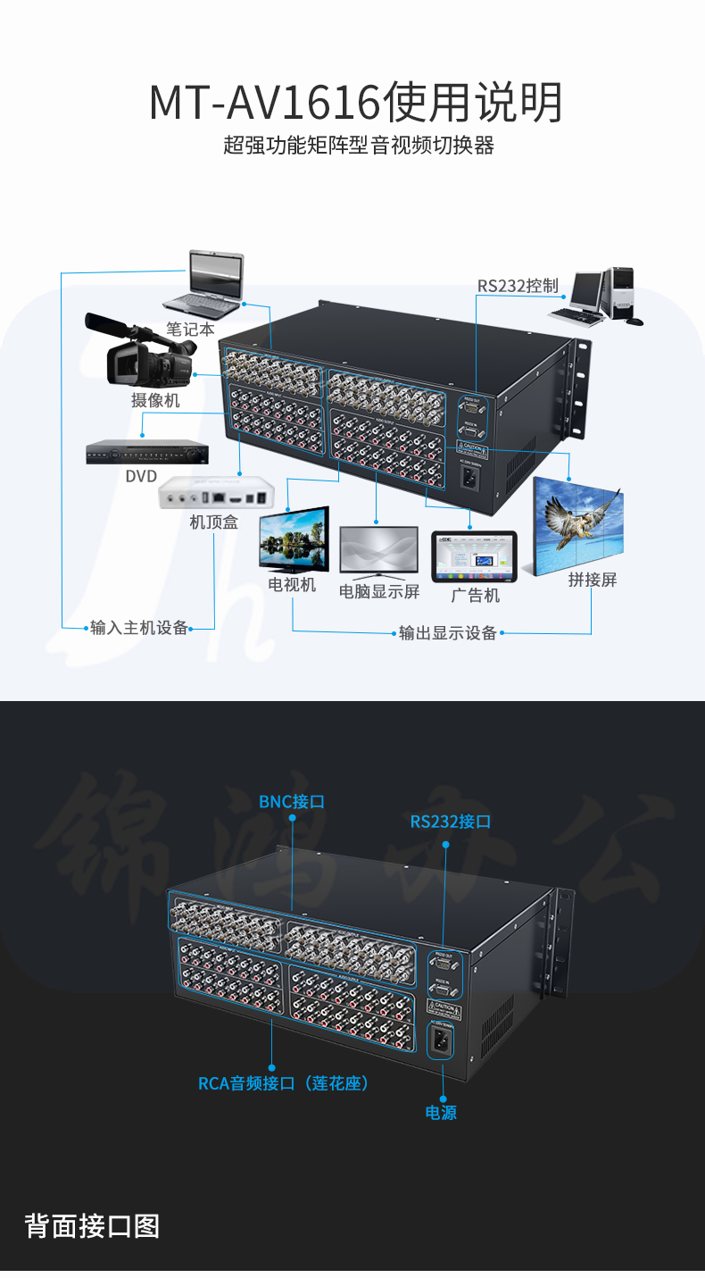 迈拓维矩MT-AV1616 av矩阵16进16出切换器高清监控音频视频矩阵主机