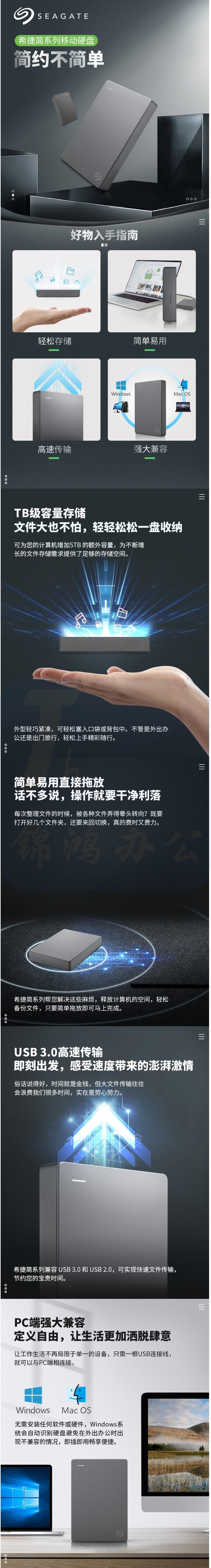 希捷 移动硬盘 4TB 简 USB 3.0 2.5英寸