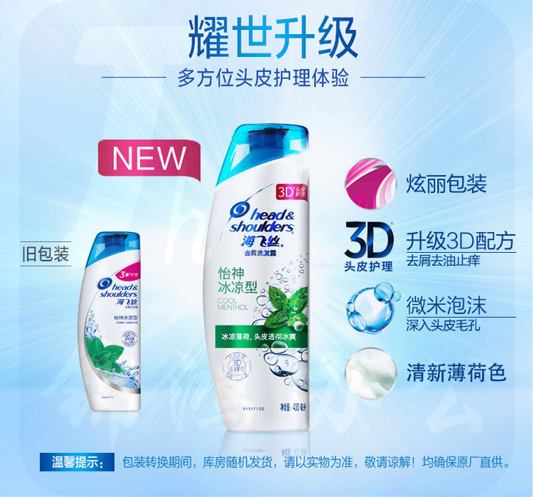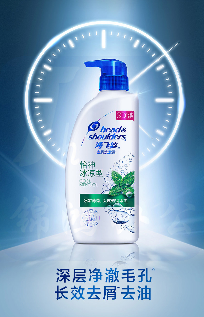 海飞丝洗发水 怡神冰凉型400g去屑洗发露头皮冰爽 双重薄荷