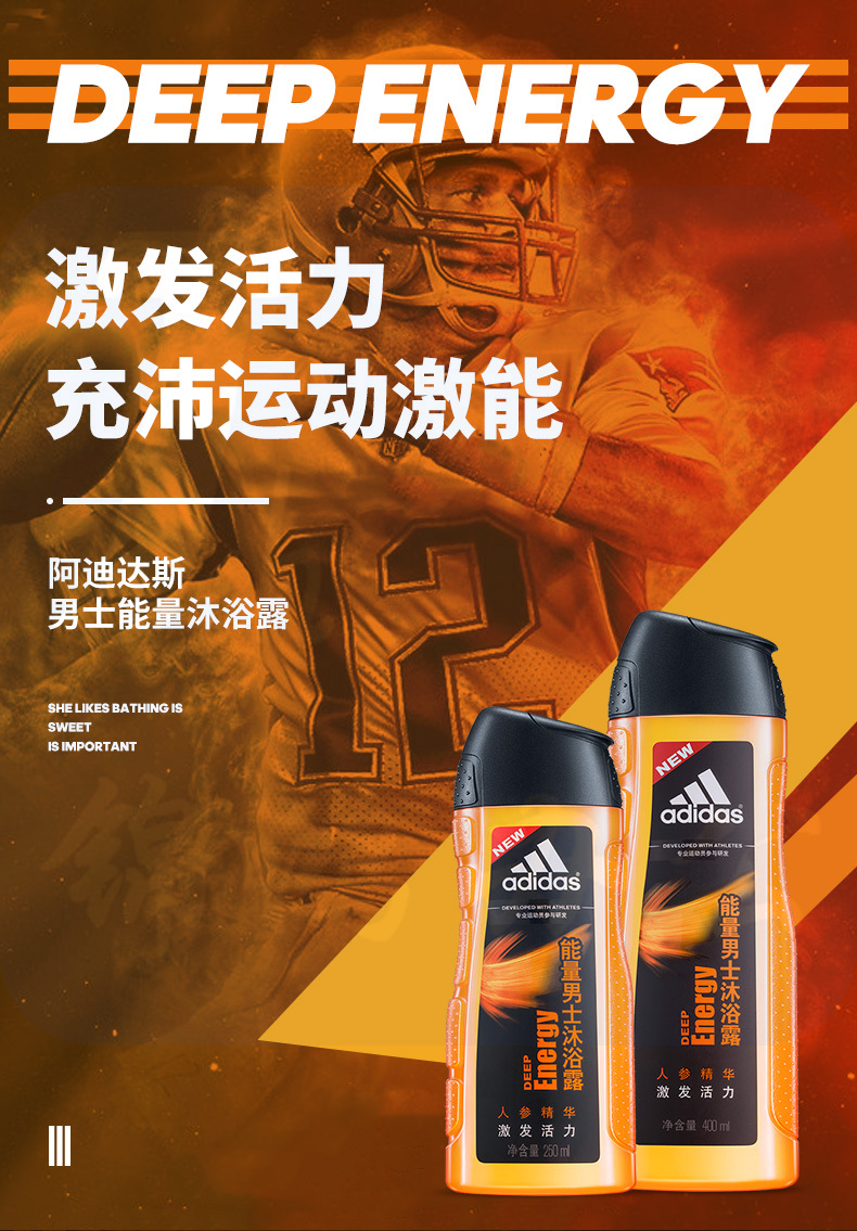 阿迪达斯 沐浴露400ml男士能量沐浴液 清凉舒爽长久留香