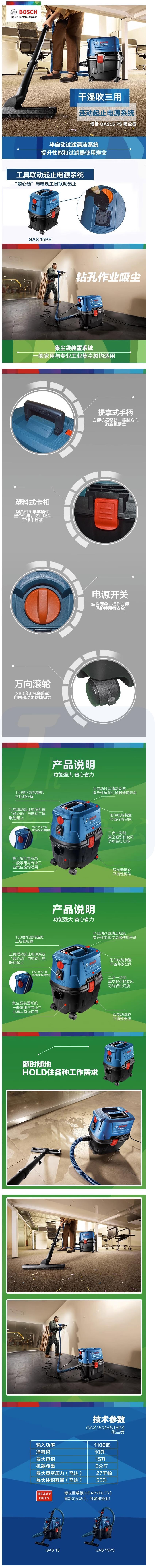 博世 GAS15 吸尘器 工业款多功能用途吹风机干湿吹三用联动除尘器 货号:GD