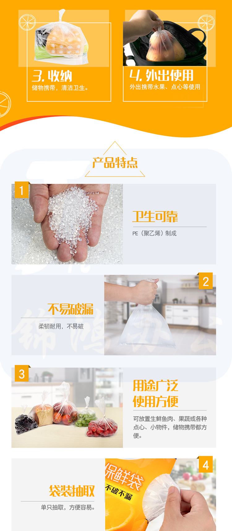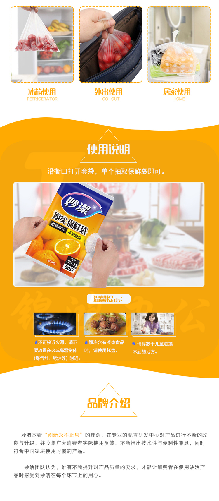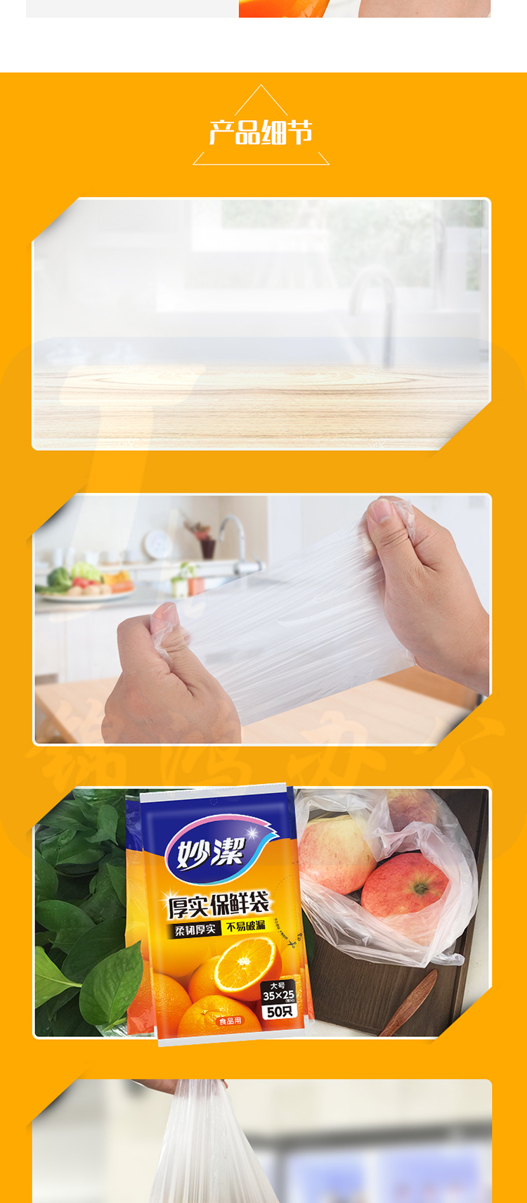 妙洁(MIAOJIE ) 厚实 耐用 抽取式保鲜袋 单包装 大号50个装