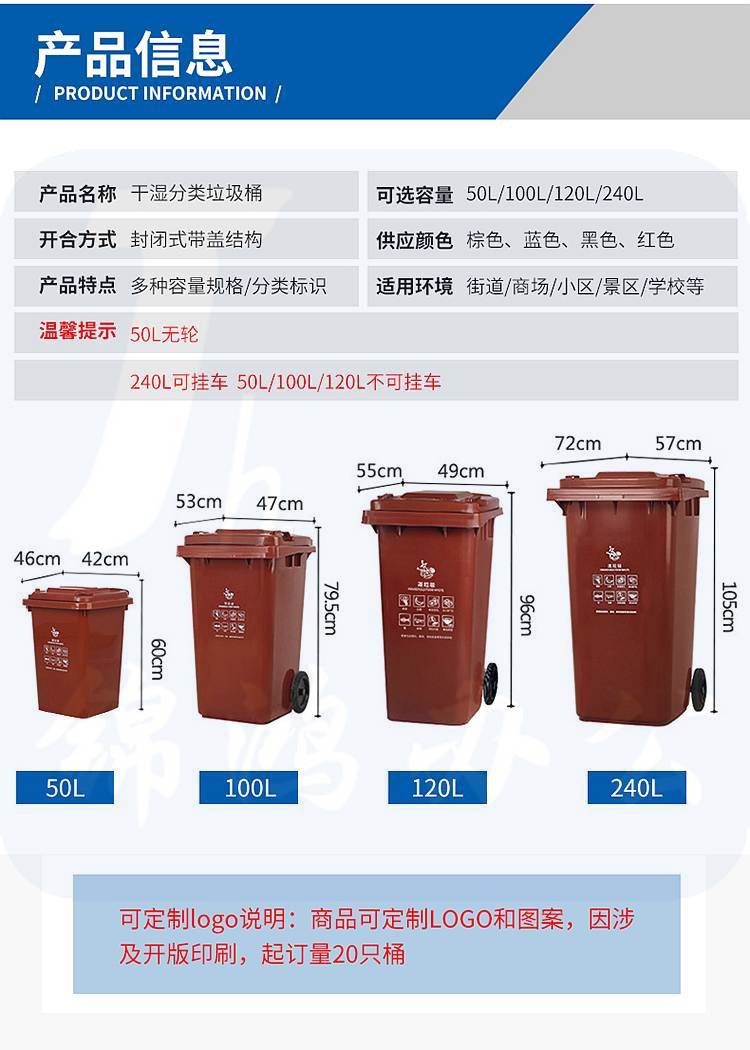 科力邦 KB1040大号加厚干湿分类垃圾桶套装黑咖红蓝120L(套)