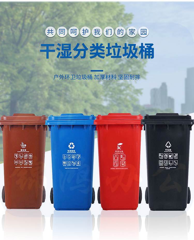 科力邦B1040大号加厚干湿分类垃圾桶套装黑咖红蓝120L(套)