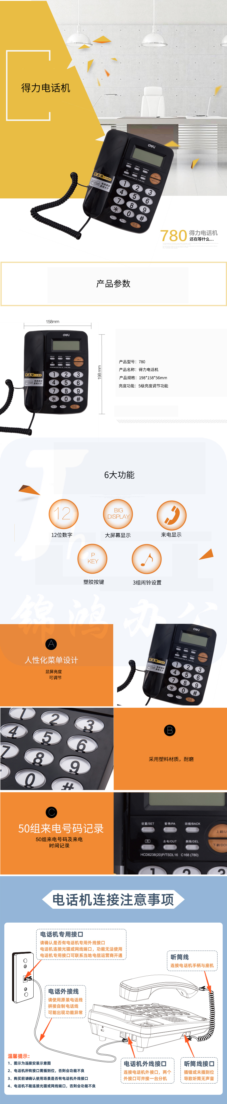 得力780 电话机固定电话座机/壁挂电话机 (白)