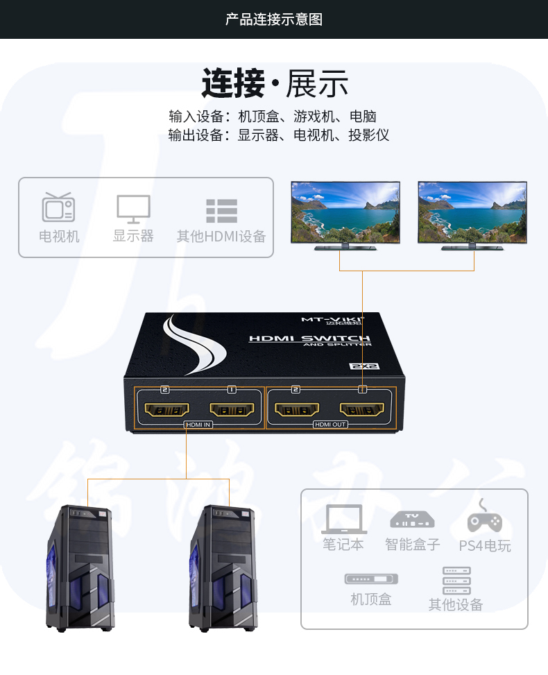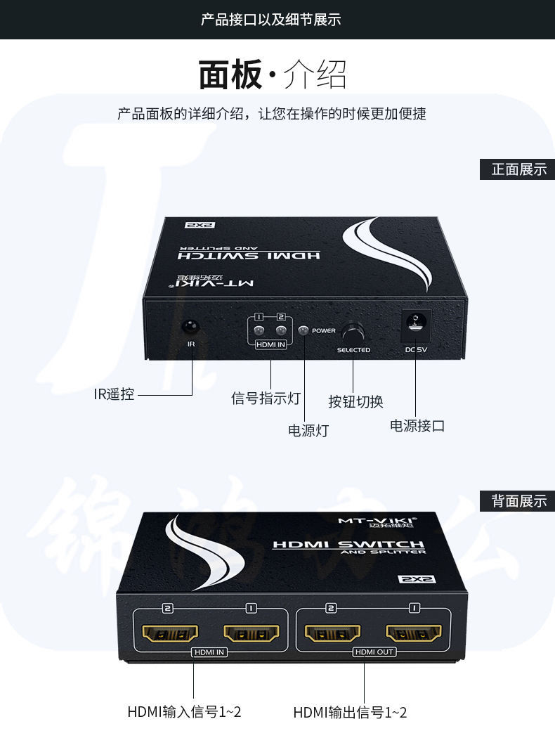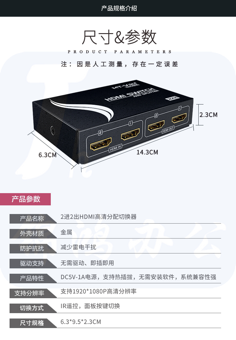 迈拓维矩MT-HD2-2 hdmi切换分配器2进2出一拖二高清音视频共享二分二