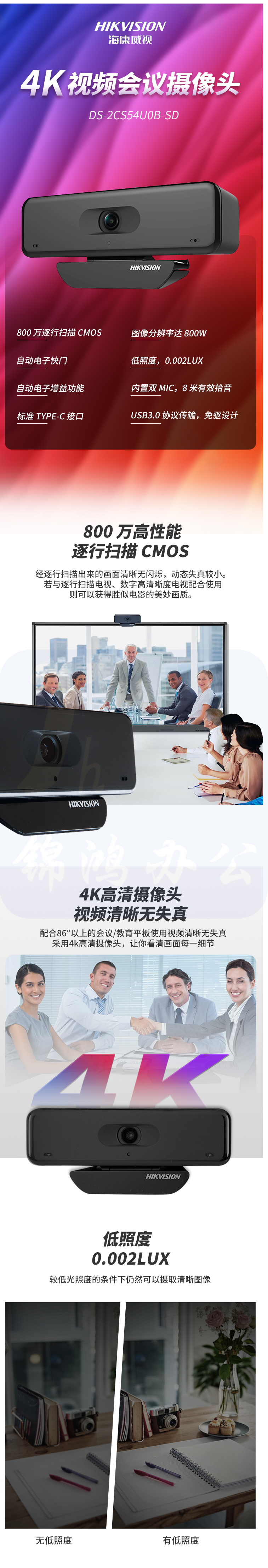 海康威视 HIKVISION 800万会议摄像机4K高清