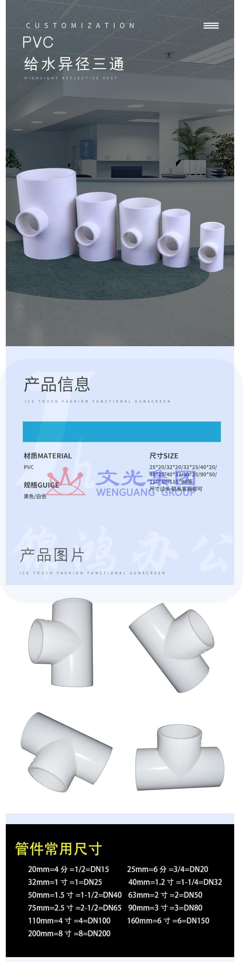 PVC异径三通 排水管件 变径三通 75转50 货号:JC