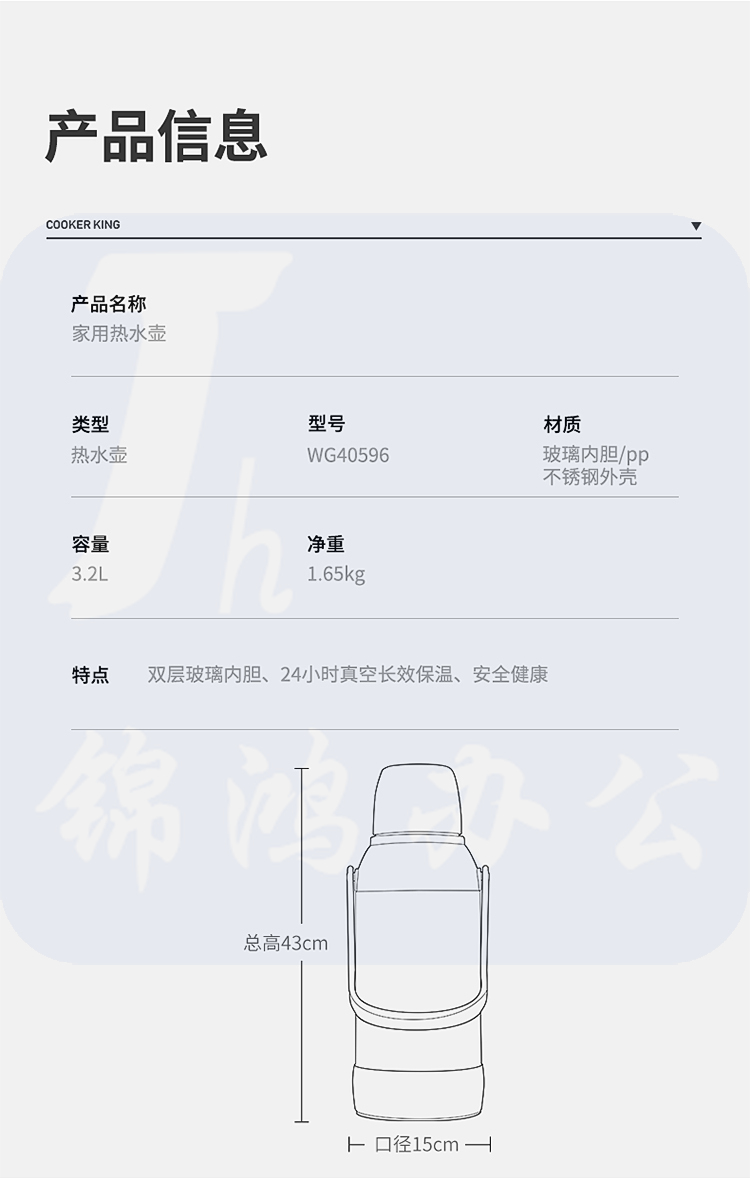 保温瓶 3.2L开水瓶高档家用热水壶保温壶大容量不锈钢暖瓶