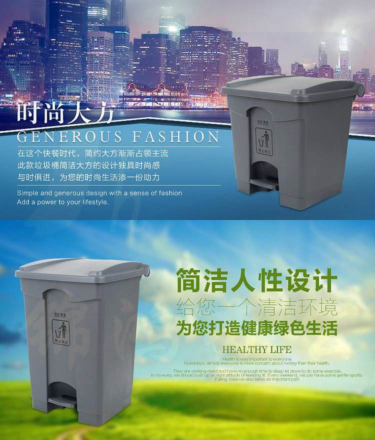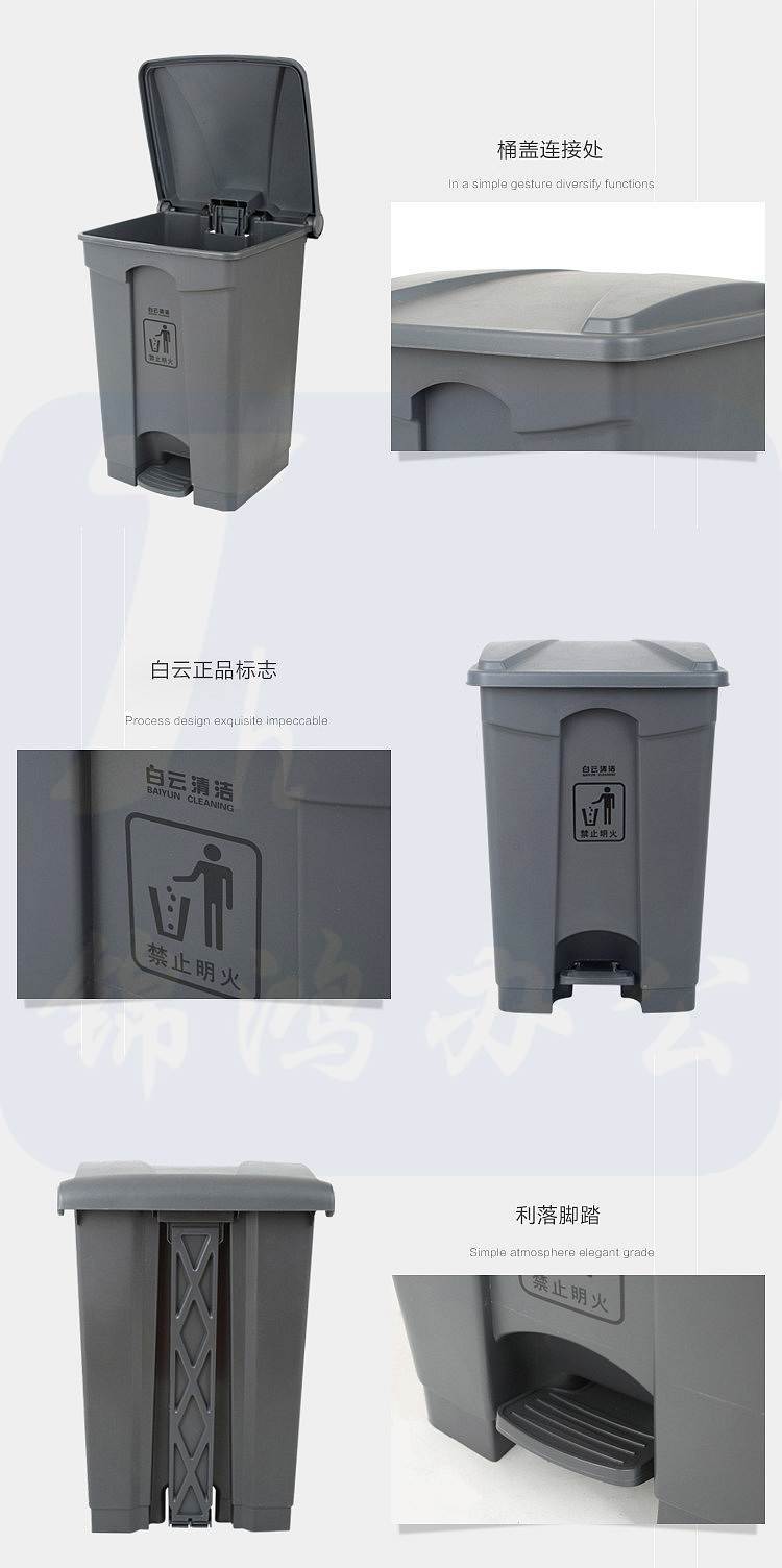 描述:白云45L户外脚踏板式垃圾桶长方形灰色塑料垃圾筒410*398*600mm(个)
