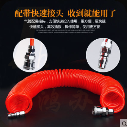 巨联(JULIAN)橙色5*8*50尺(12米左右)(配接头)气动弹簧管空压机气泵气管软管伸缩PU螺旋风管带快速接头气线气绳