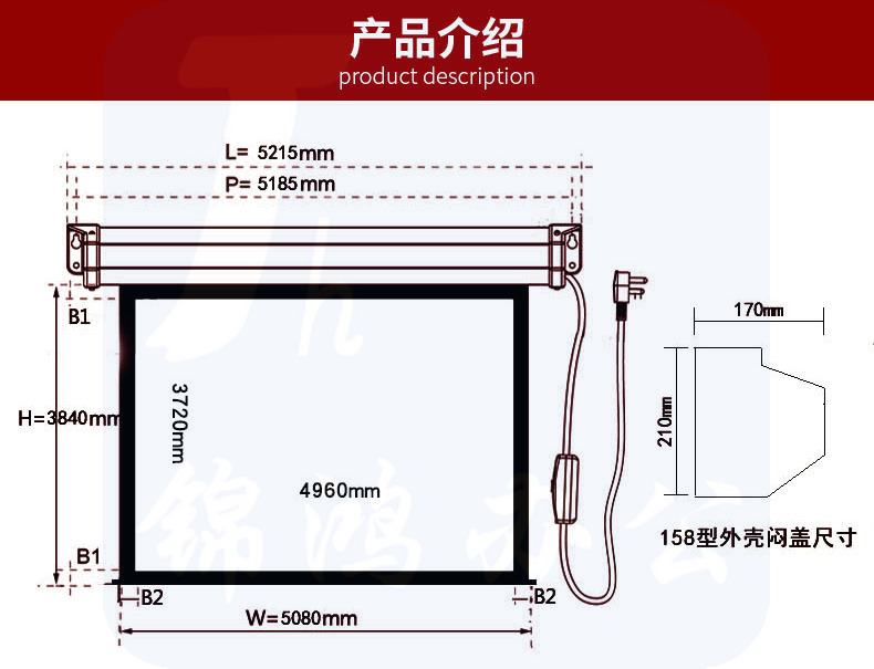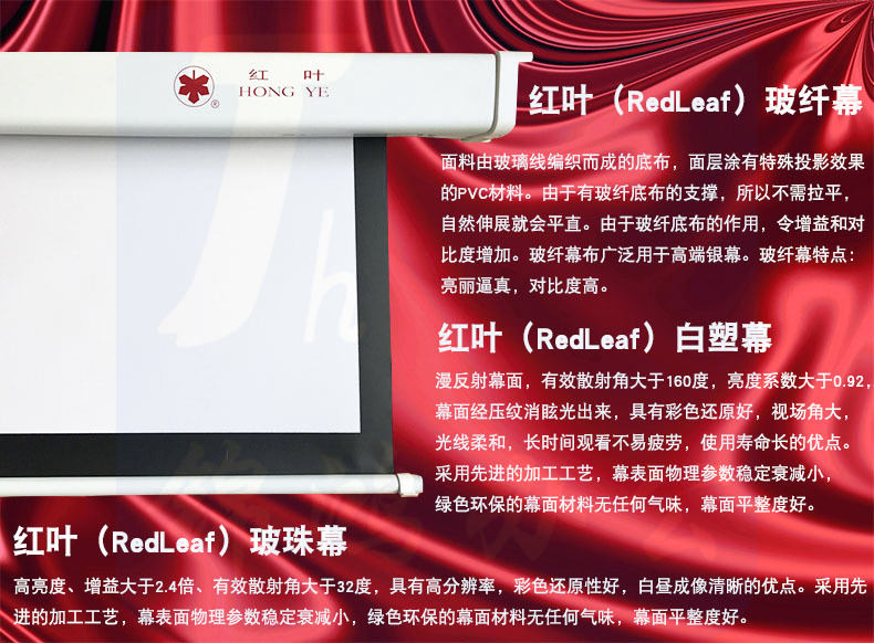 红叶(HONGYE)300英寸4:3 电动玻珠白塑银幕 需定做 6.10*4.60 白塑