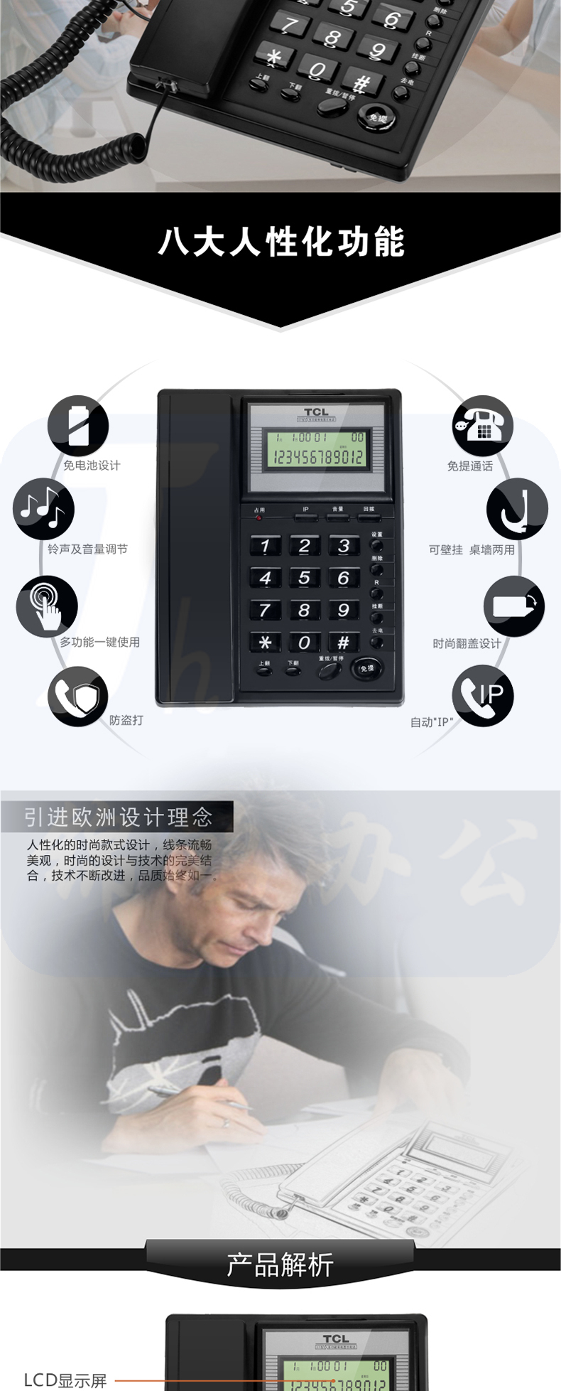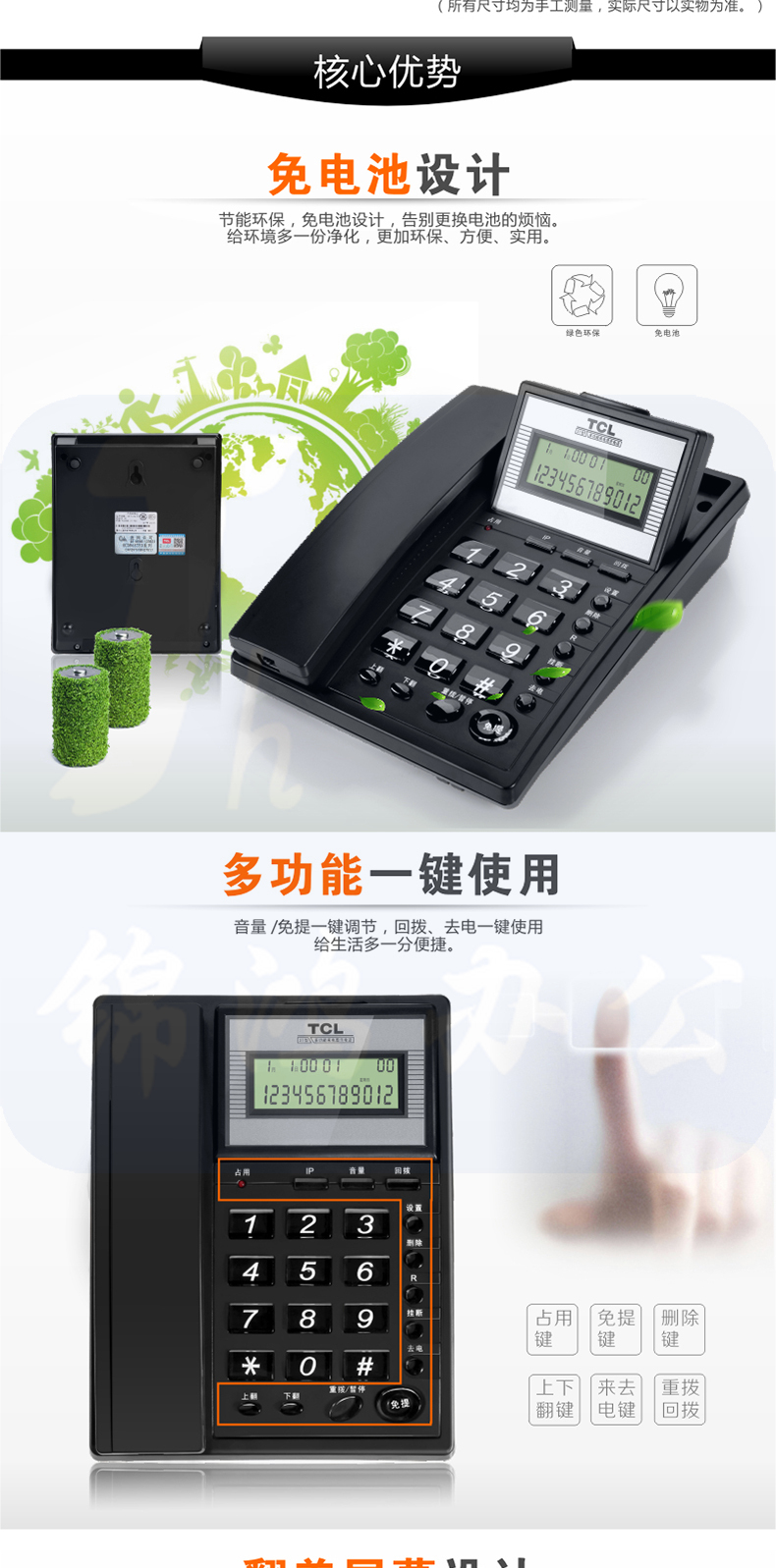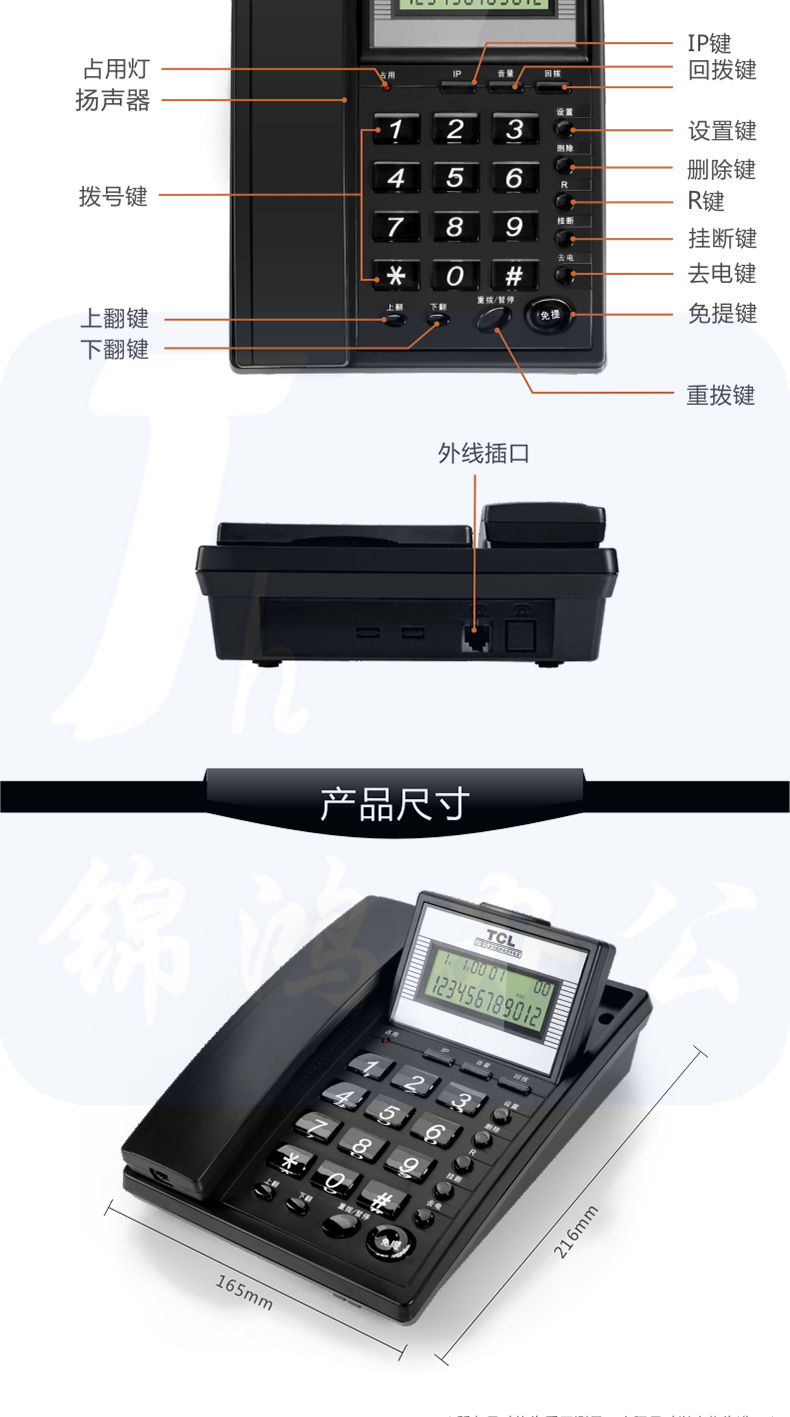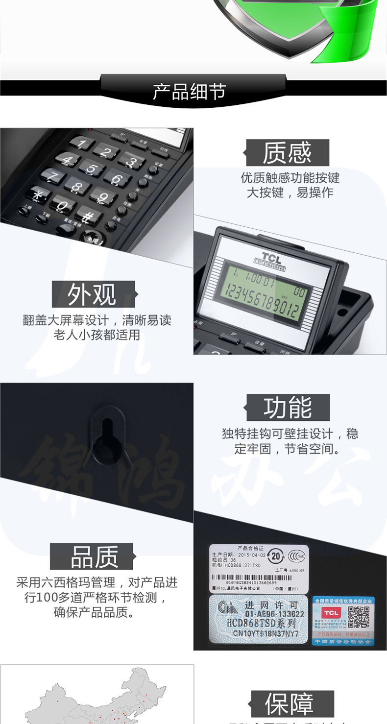 TCL电话机 HCD868(37) 来电显示 办公固定电话座机 颜色随机