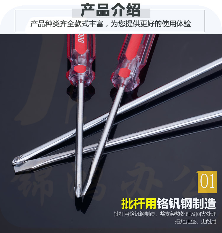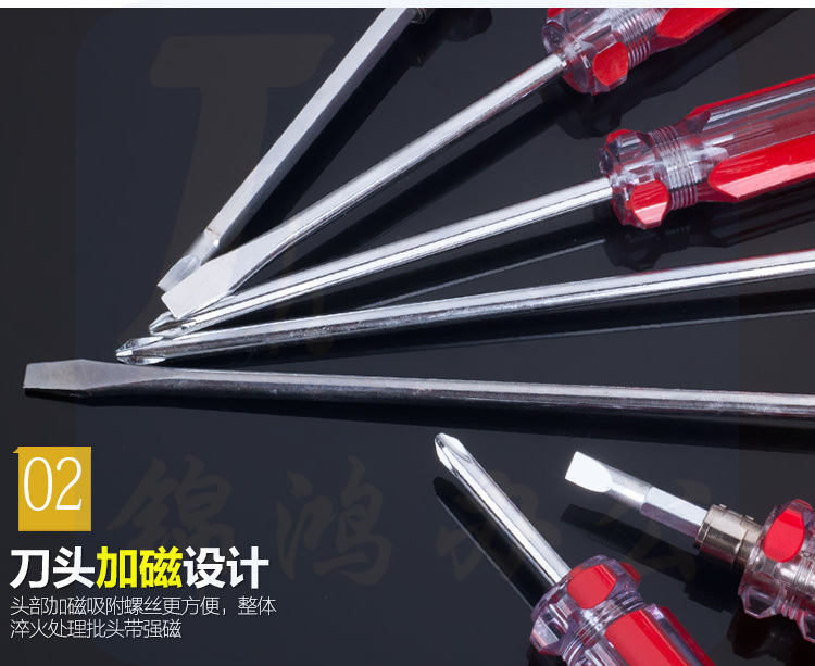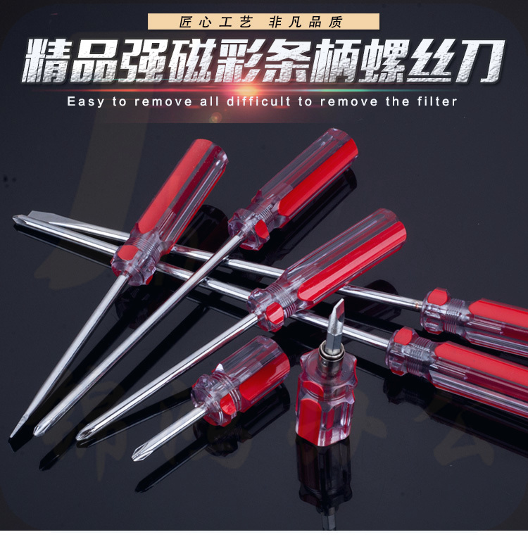 601系列双色彩条螺丝批水晶透明手柄螺丝刀改锥带磁螺丝刀3*75一字
