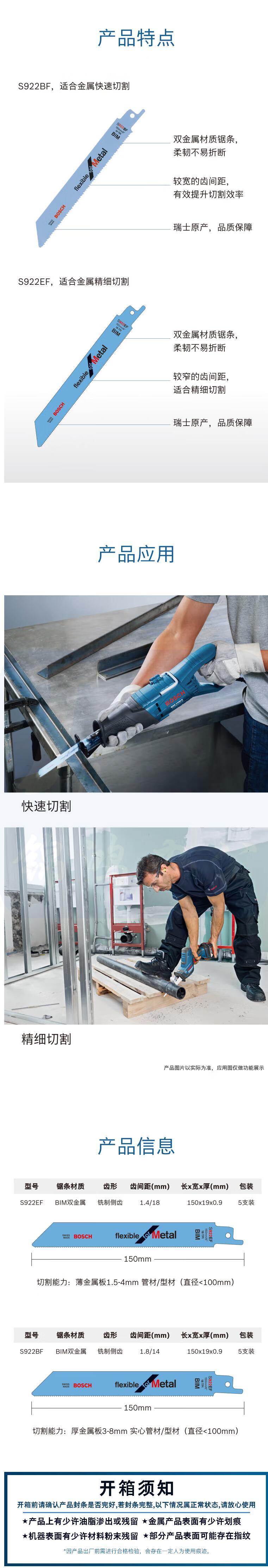 博世 S922EF 5支装 锯条 原装往复锯条马刀锯条