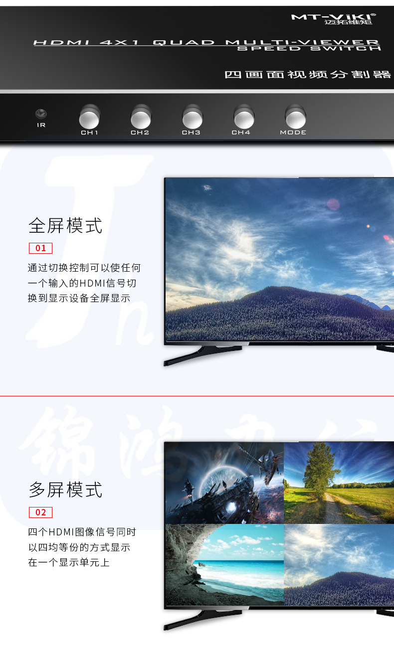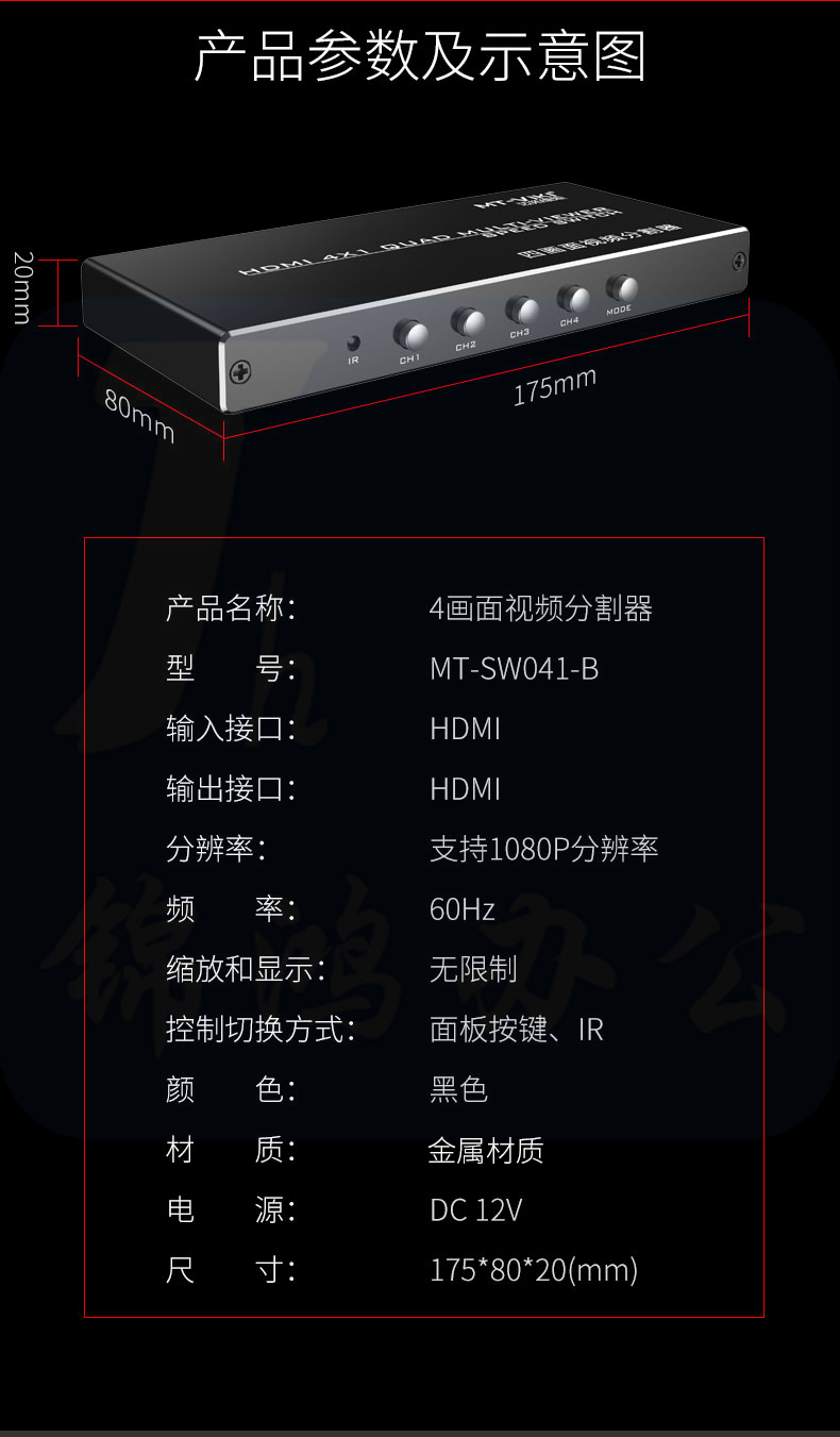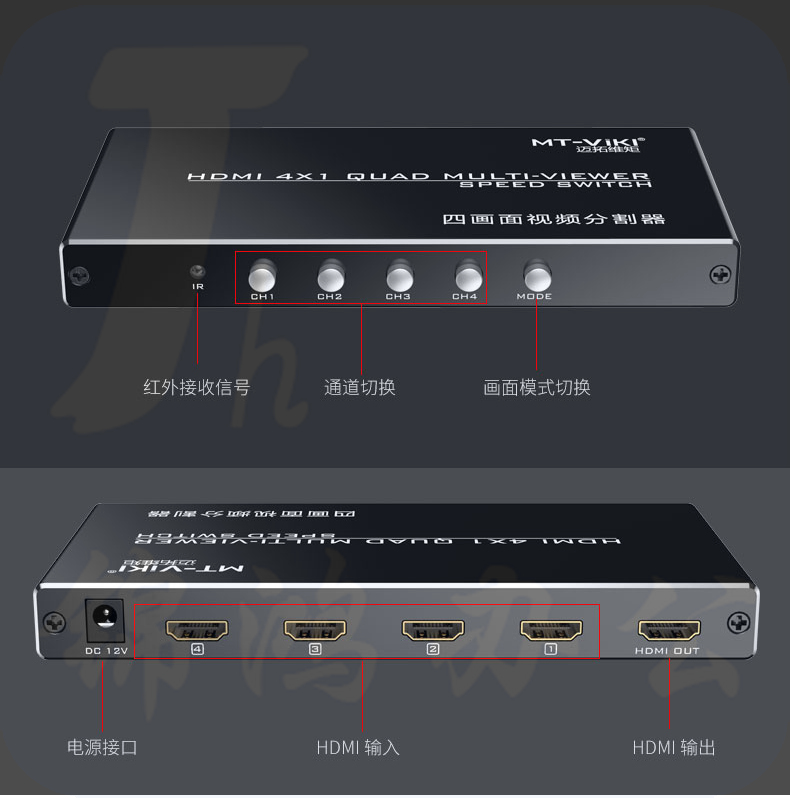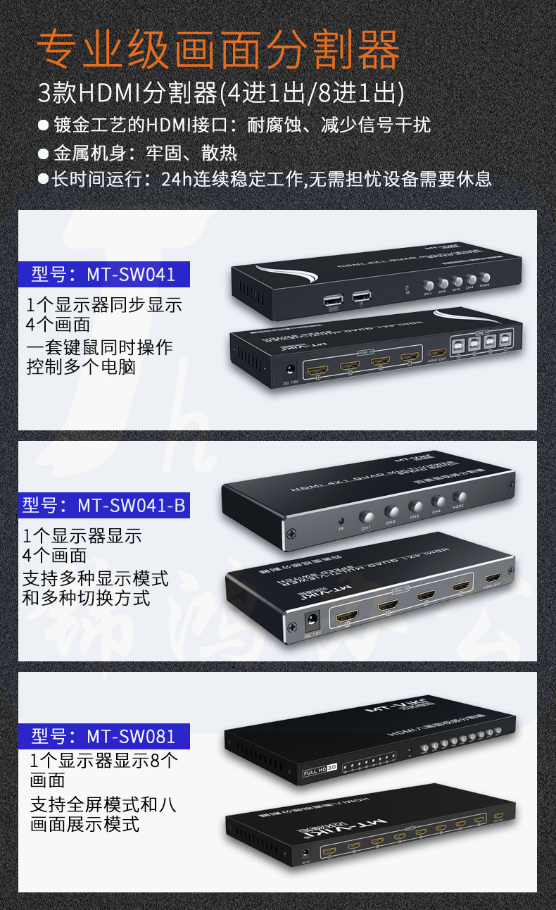迈拓维矩 HDMI分割器四八画面合成器4进1出分屏器游戏视频电脑监控监视4口同步拼接器4个屏幕拼成大屏 4路 HDMI分割器 MT-SW041-B