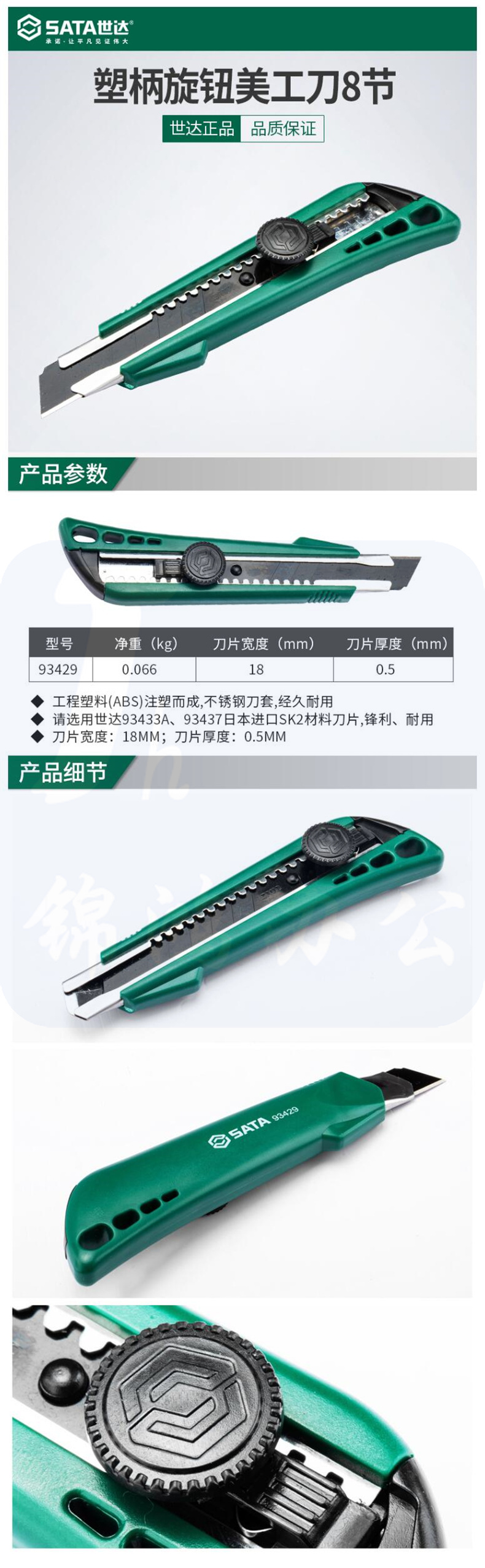 世达(SATA)塑柄旋钮美工刀8节18x100MM 93429