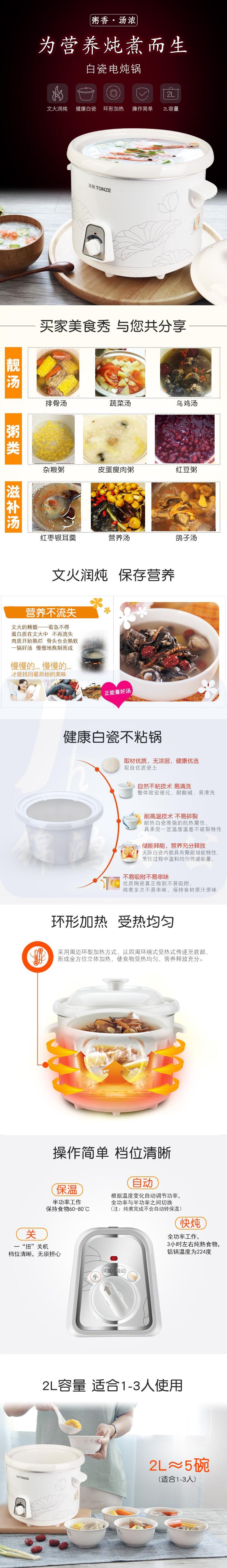 天际 2L家用 DDG-20N 电炖锅陶瓷 煮粥煲汤 货号:JC