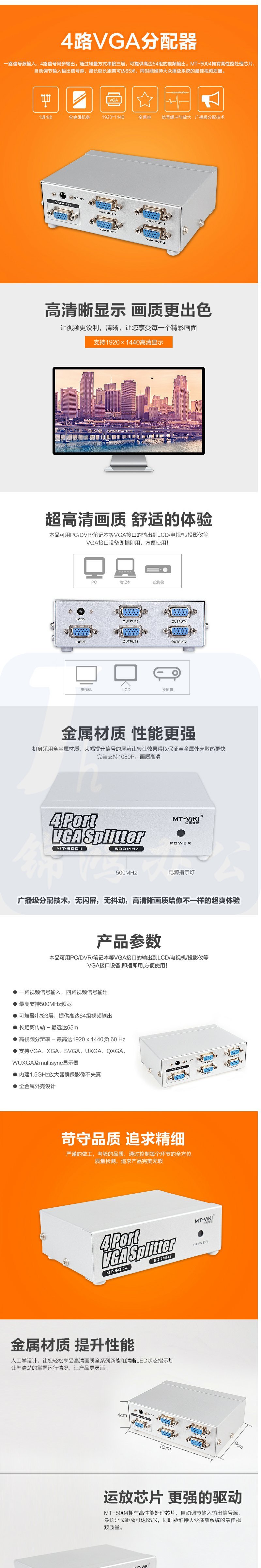迈拓维矩 MT-5004 高清四口 VGA分配器 500MHZ
