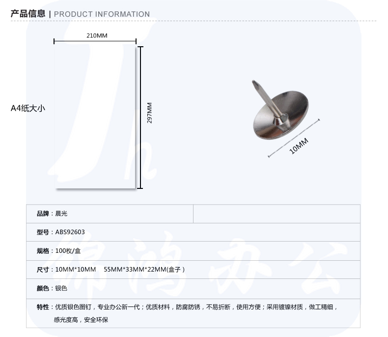 晨光 图钉 按钉100枚装*10盒装 ABS92603