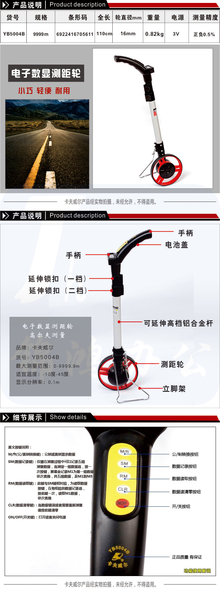 卡夫威尔(OK-TOOLS) YB5004B 电子数显测距轮/轮式测距仪/手持式测量轮尺