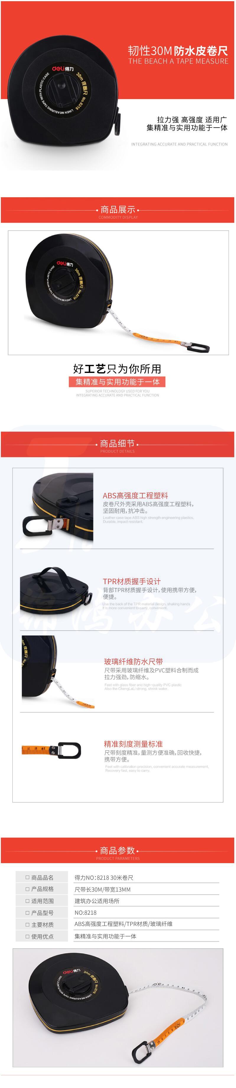 得力 30m皮卷尺操场盘式卷尺 30米皮卷尺软尺测量尺子8218