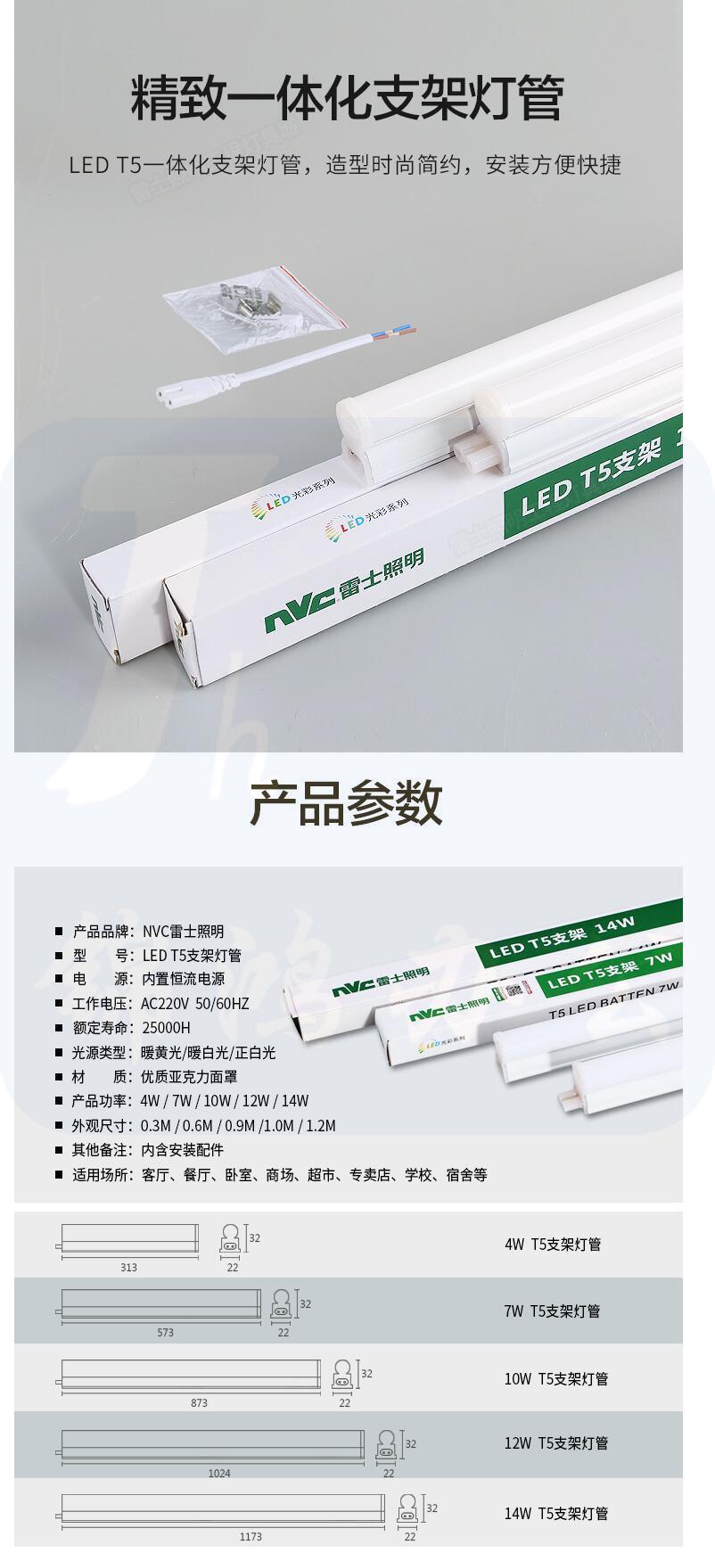 雷士照明 LED T5 支架 14W 30根/箱 整箱下单