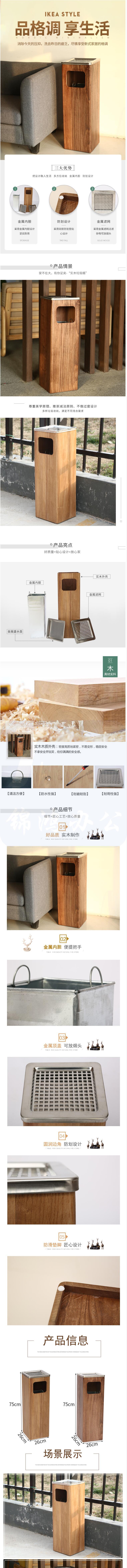 实木垃圾桶 胡桃木色(全实木)75*26*26cm带烟灰缸
