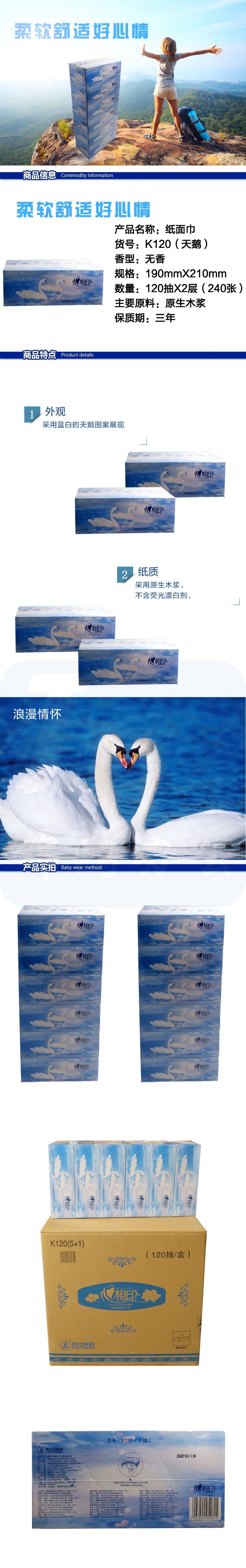 心相印 K120 抽纸硬盒装面巾纸 双层120抽*6盒/提*8提/箱 190mm*210mm(48盒)